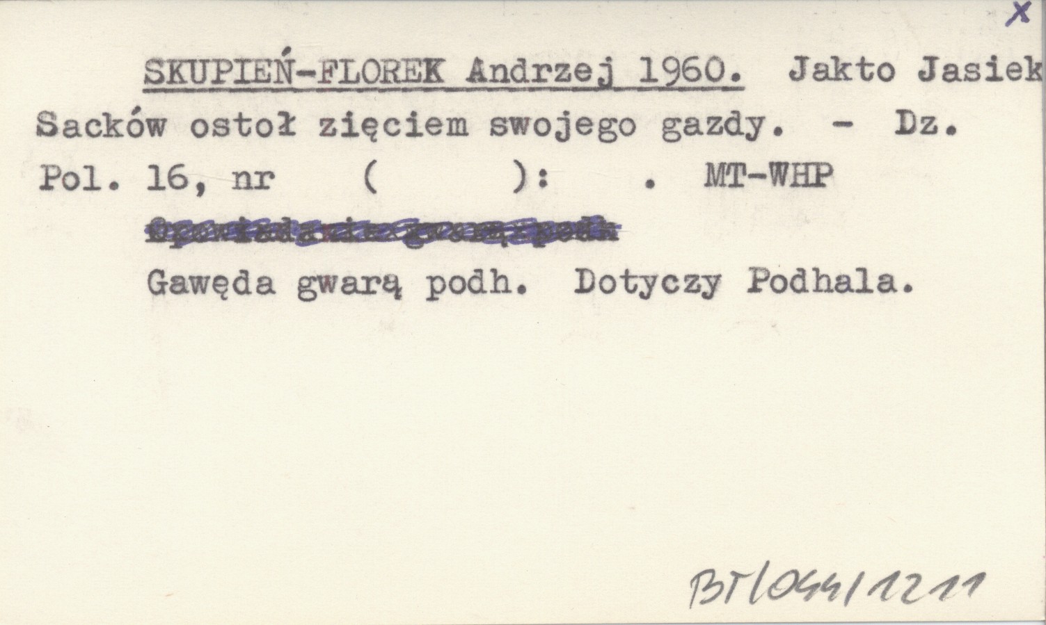 SKUPIEŃ-FLOREK Andrzej 1960 Jakto Jasiek Sacków ostoł zięciem swojego gazdy.
