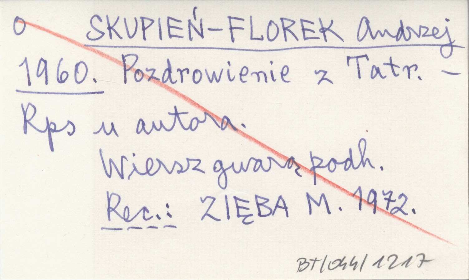 , Wiersz gwarą podhalańską. Rękopis u autora. REC: ZIĘBA M. 1972