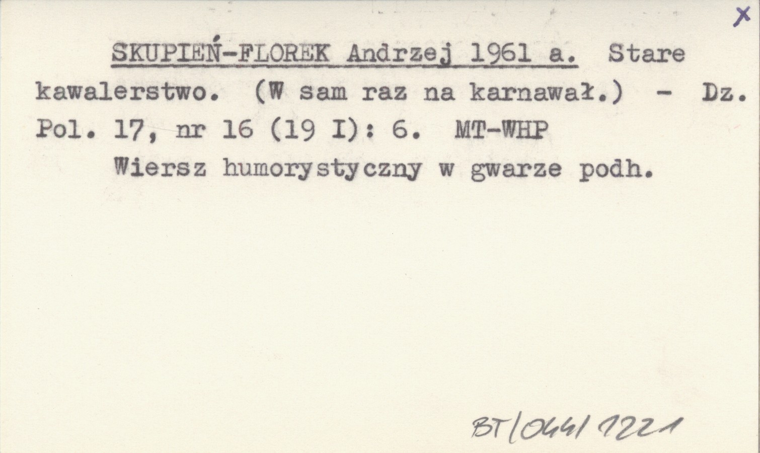 SKUPIEŃ-FLOREK Andrzej 1961 a Stare kawalerstwo. (W sam raz na karnawał).