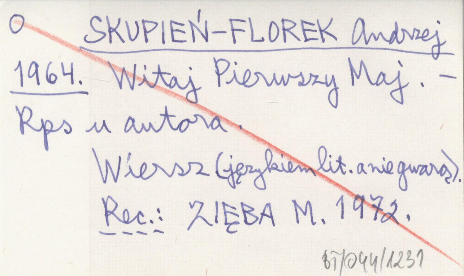 , Wiersz (językiem literackim a nie gwarą). Rękopis u autora. REC: ZIĘBA M. 1972
