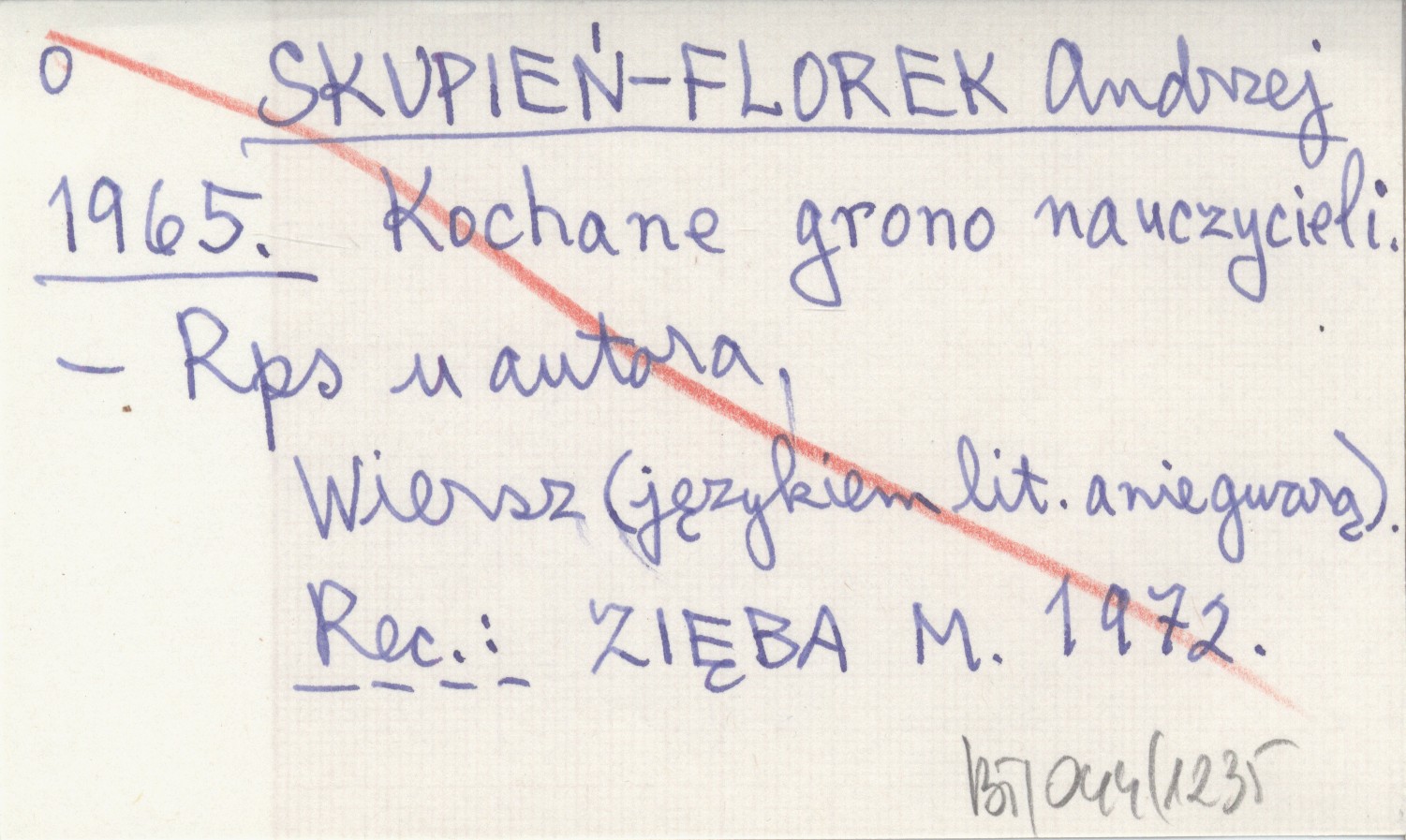 , Wiersz (językiem literackim a nie gwarą). Rękopis u autora. REC: ZIĘBA M. 1972