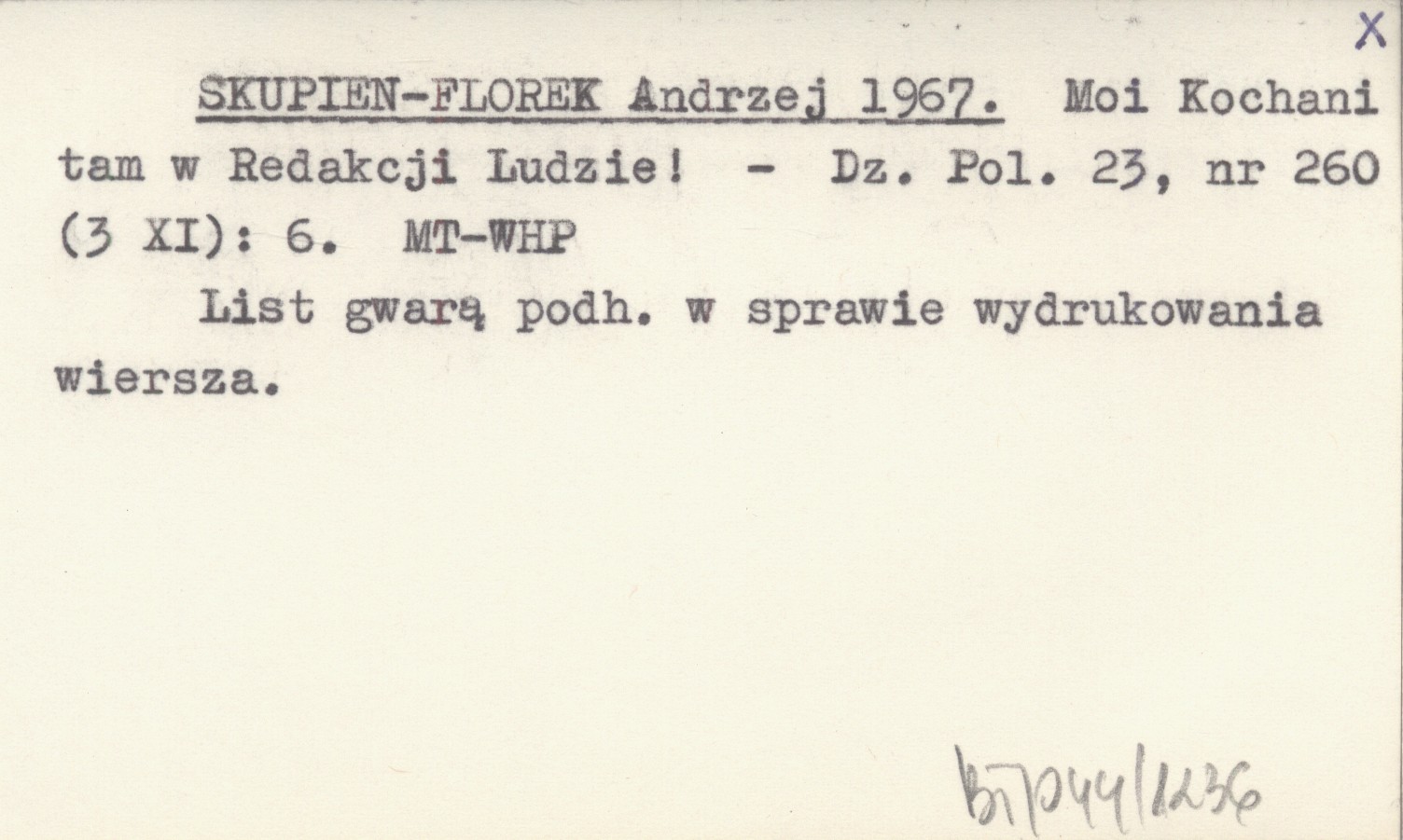 SKUPIEŃ-FLOREK Andrzej 1967 Moi Kochani tam w Redakcji Ludzie!