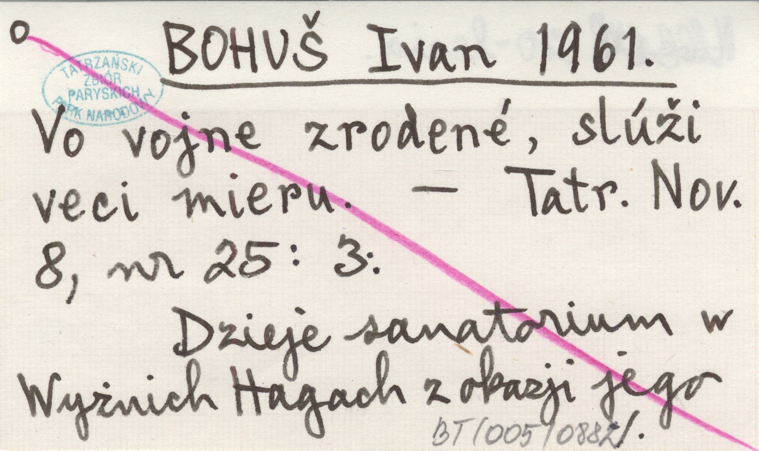BOHUŠ Ivan 1961 Vo vojne zrodené, slúži veci mieru.