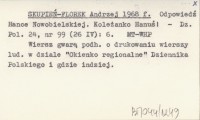 SKUPIEŃ-FLOREK Andrzej 1968 f Odpowiedź Hance Nowobielskiej. koleżanko Hanuś!