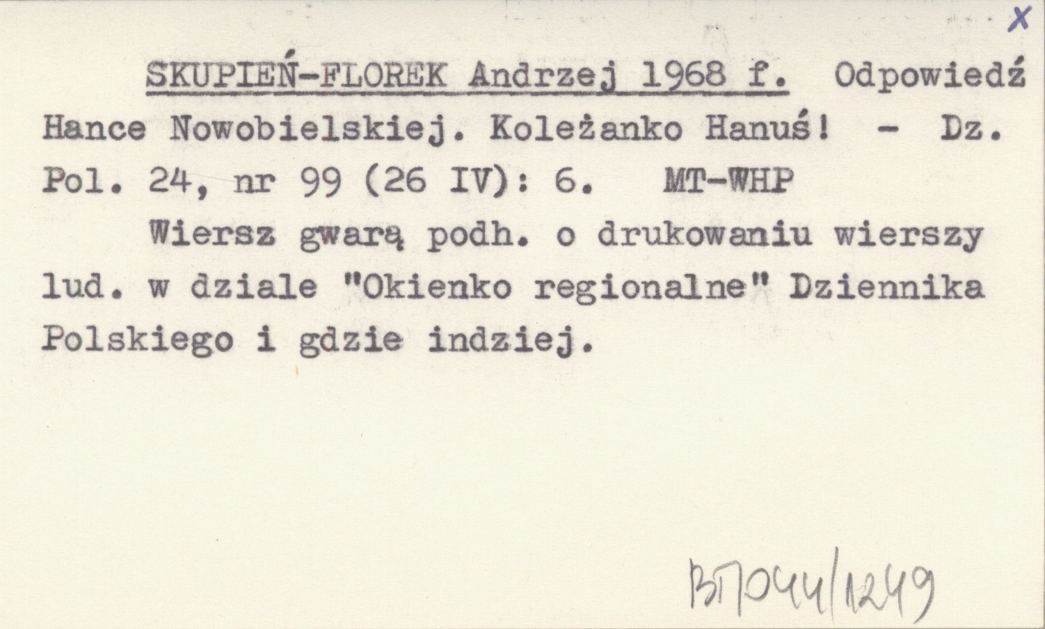 SKUPIEŃ-FLOREK Andrzej 1968 f Odpowiedź Hance Nowobielskiej. koleżanko Hanuś!