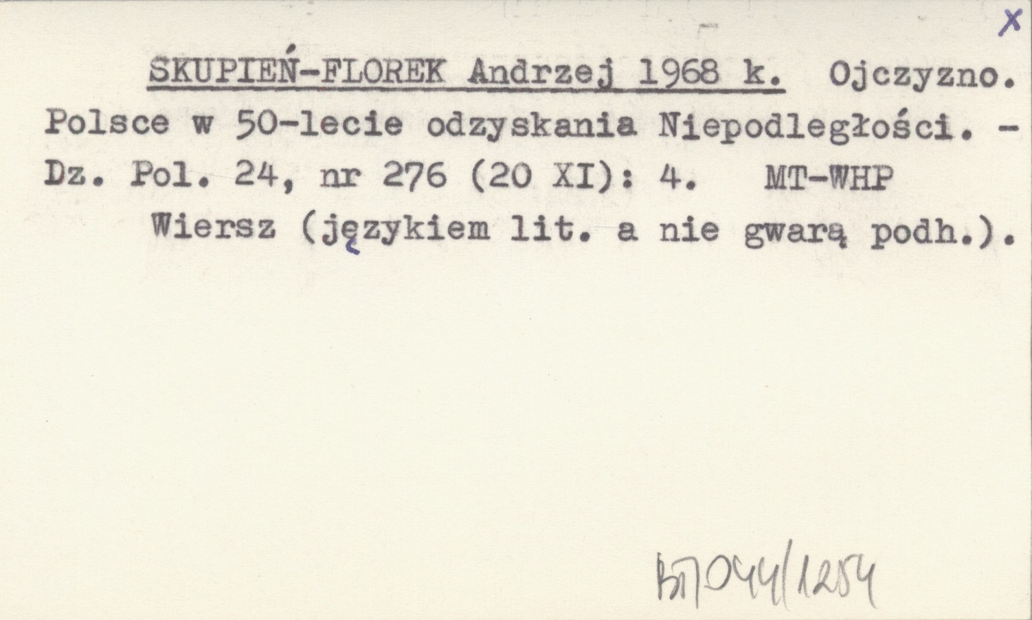 SKUPIEŃ-FLOREK Andrzej 1968 k Ojczyzno. Polsce w 50-lecie odzyskania Niepodległości.