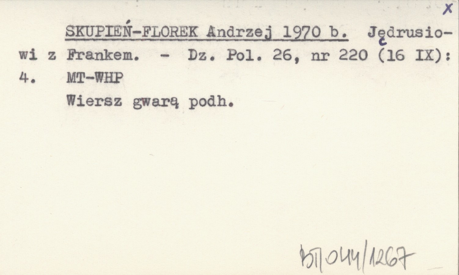 SKUPIEŃ-FLOREK Andrzej 1970 b Jędrusiowi z Frankiem.