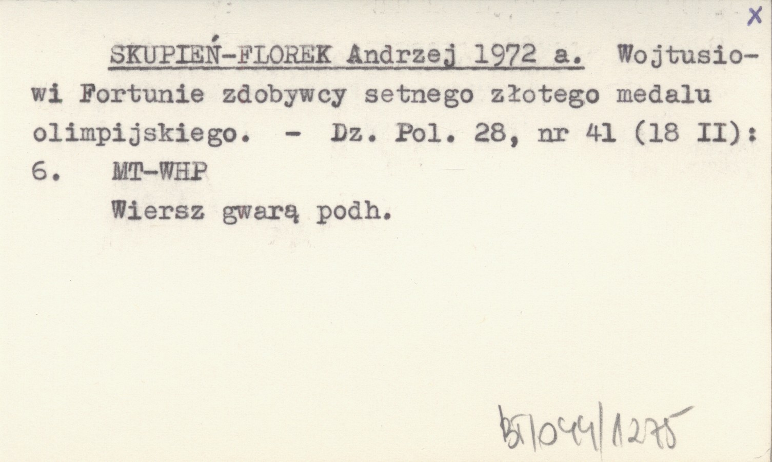 SKUPIEŃ-FLOREK Andrzej 1972 a Wojtusiowi Fortunie zdobywcy setnego złotego medalu olimpijskiego.