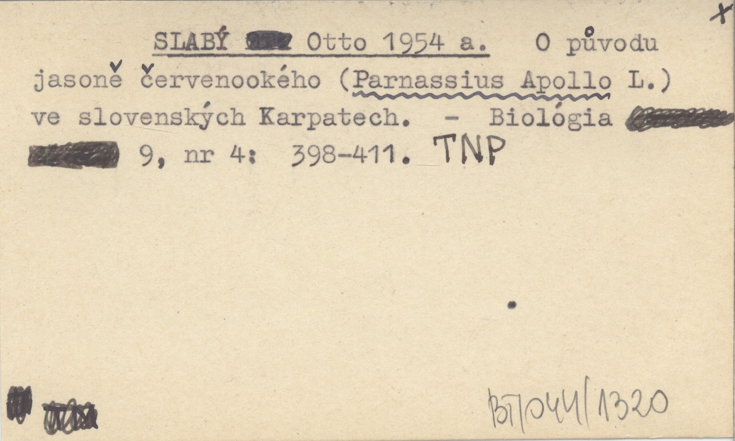 SLABĘ Otto 1954 a O pùvodu jasonì èervenookého (Parnassius Apollo L.) ve slovenskęch Karpatech.
