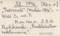 Sl. 1946 [Rec. o:] "Twórczość" (Kraków 1946).