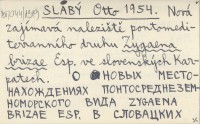 SLABÝ Otto 1954 Nová zajímavá naleziště pontomediterranního druhu Zygaena brizae Esp. ve slovenských Karpatech. O novych mestonachoždenijach pontosrediezemnomorskogo vida Zygaena brizae Esp. v slovackich Karpatach i o ego rasprostranenii v novych arealach. Über neue Fundorte der Zygaena brizae Esp. im Slovakischen Karpathengebiete und über ihr Verbreiten in neue Areale. (Lep. Zygaenidae).