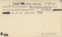 SLABÝ Otto 1954 a O původu jasoně červenookého (Parnassius Apollo L.) ve slovenských Karpatech.