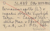 SLABÝ Otto 1954-1955 Parnassius apollo (L.) v zapadni oblasti Vysokých Tater.