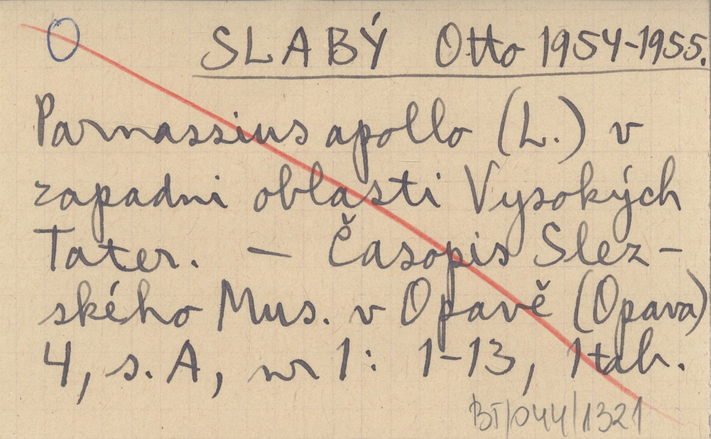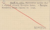 SLABĘ Otto 1954-1955 Parnassius apollo (L.) v zapadni oblasti Vysokęch Tater.