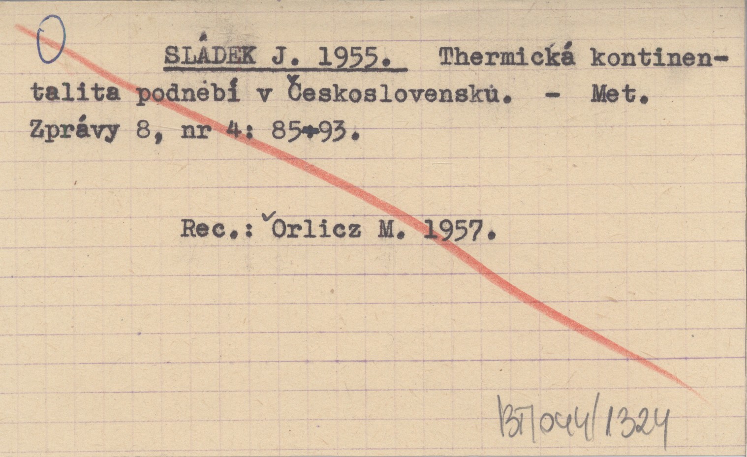 SLÁDEK J. 1955 Thermická kontinentalita podnebí v Československu.