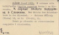 SLÁDEK Jozef 1955 K ochrane orla krikľavého (Aquila pomarina Brehm.) na Slovensku. K ochrane malogo podorlika v Slovakii. Der Schutz des Schreiadlers in der Slowakei.
