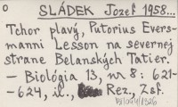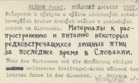 SLÁDEK Jozef MOŠANSKÝ, Aristid. ; 1957 Príspevok k výskytu a výžive niektorých zriedkavejších druhov dravých vtákov v posledných rokoch na Slovensku. Materialy k rasprostraneniju i pitaniju nekotorych redkovstrečašichsia chišnych ptic za poslednee vremia v Slovakii. Über das Vorkommen und die Ernährung einiger selteneren Greifvogel-Arten während der letzten Jahre in der Slowakei.