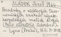 SLÁDEK Jozef 1966... Poznámky o niektorých taxonomických znakoch západokarpatských mačiek divých (Felis silvestris Schreber).