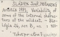 SLÁDEK Jozef MOŠANSKÝ, Aristíd. ; PALÁŠTHY, Jozef. ; 1971 a Variabilita vonkajších kvantitatívnych znakov mačky divej.