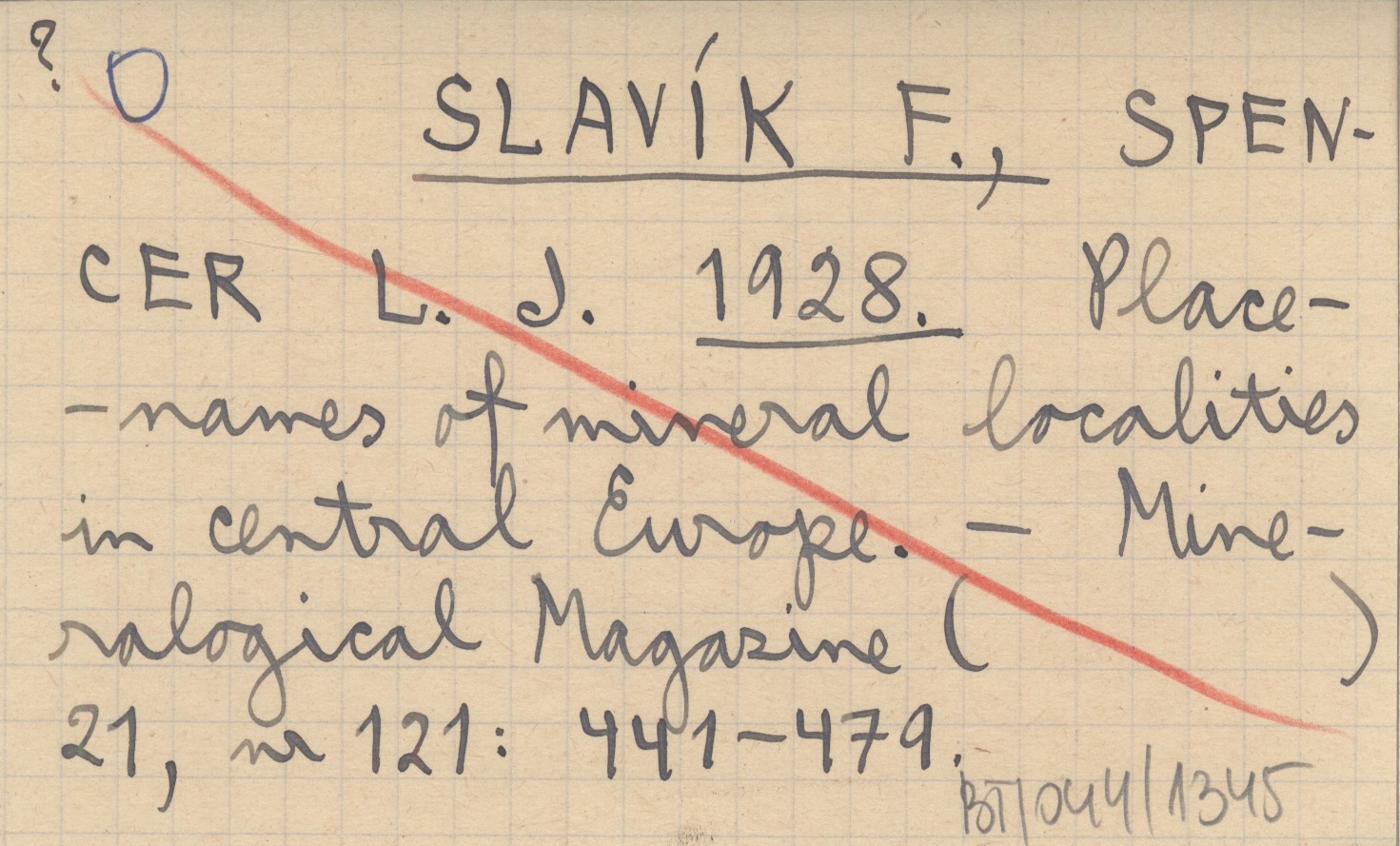 SLAVÍK F. SPENCER, L. J. ; 1928 Placenames of mineral localities in central Europe.