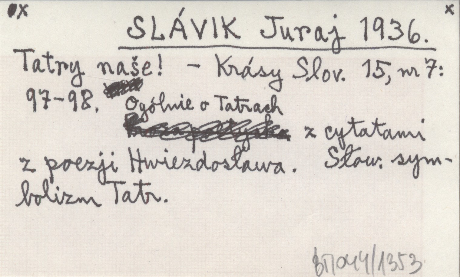 Krásy Slovenska, 15, nr 7: 97-98. Ogólnie o Tatrach z cytatami z poezji Hwiezdosława. Słowacki symbolizm Tatr.
