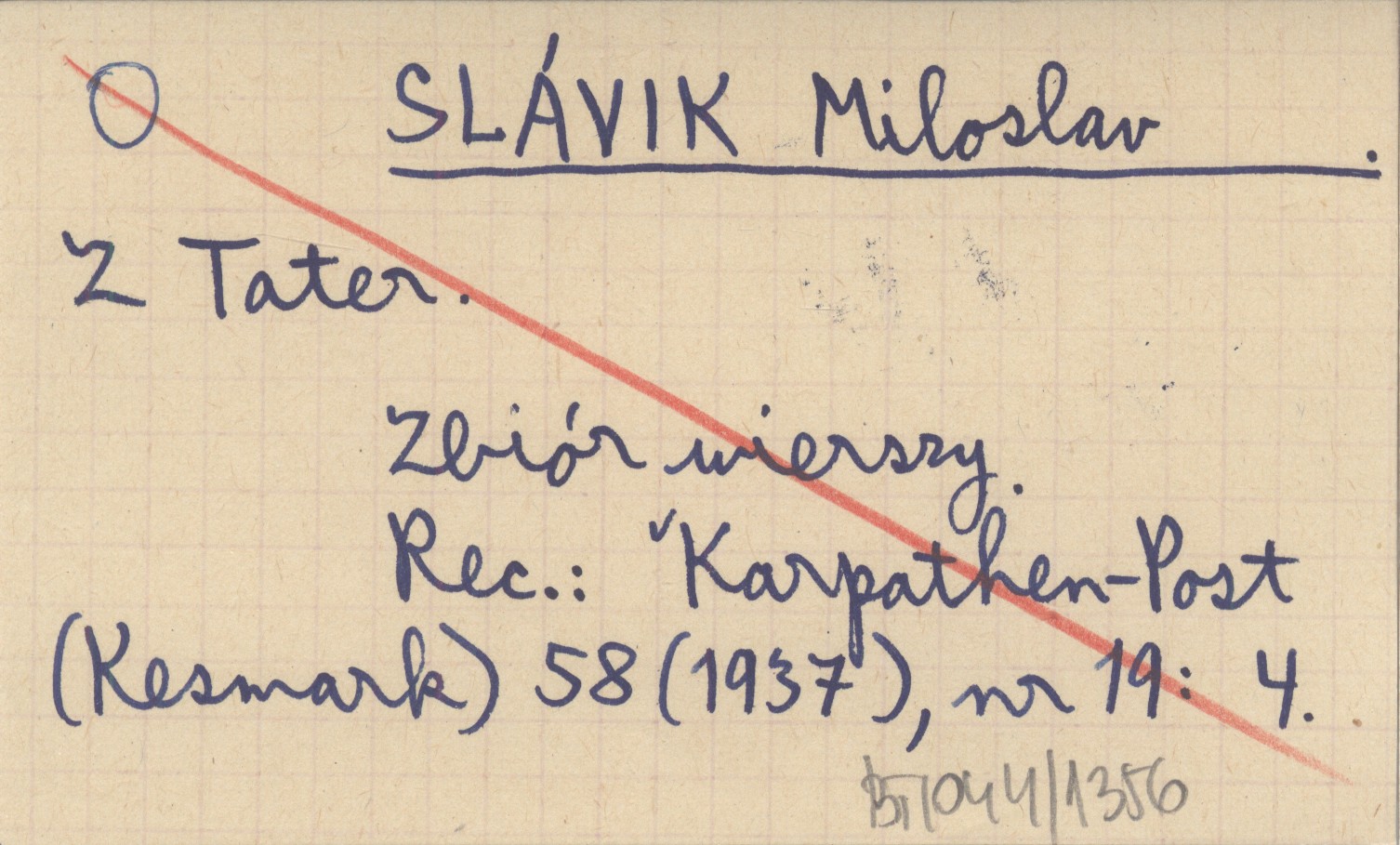 , Zbiór wierszy. REC: Karpathen-Post (Kesmark) 58 (1937), nr 19: 4.