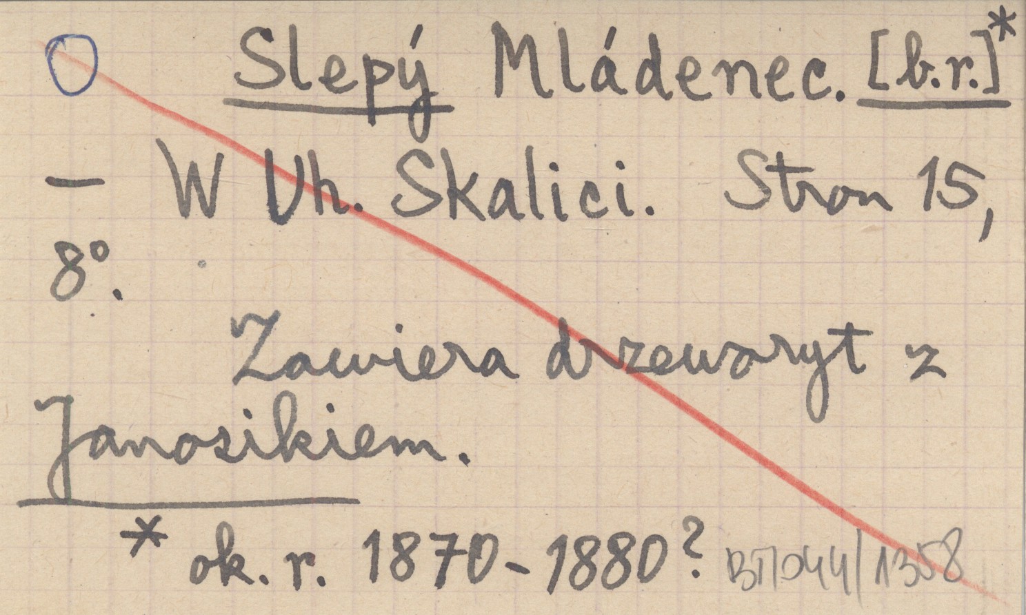 Uh. Skalici. , 15 s., 8°. Zawiera drzeworyt z Janosikiem.