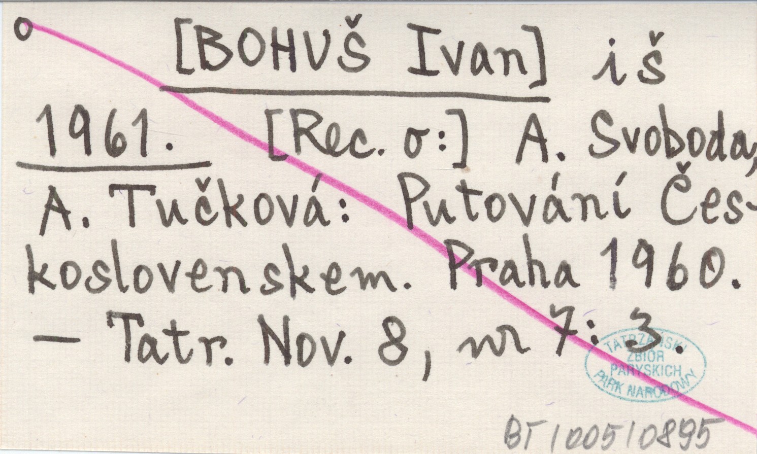 i š [BOHUŠ Ivan] 1961 A. Svoboda, A. Tučková: Putování Československem. Praha 1960.