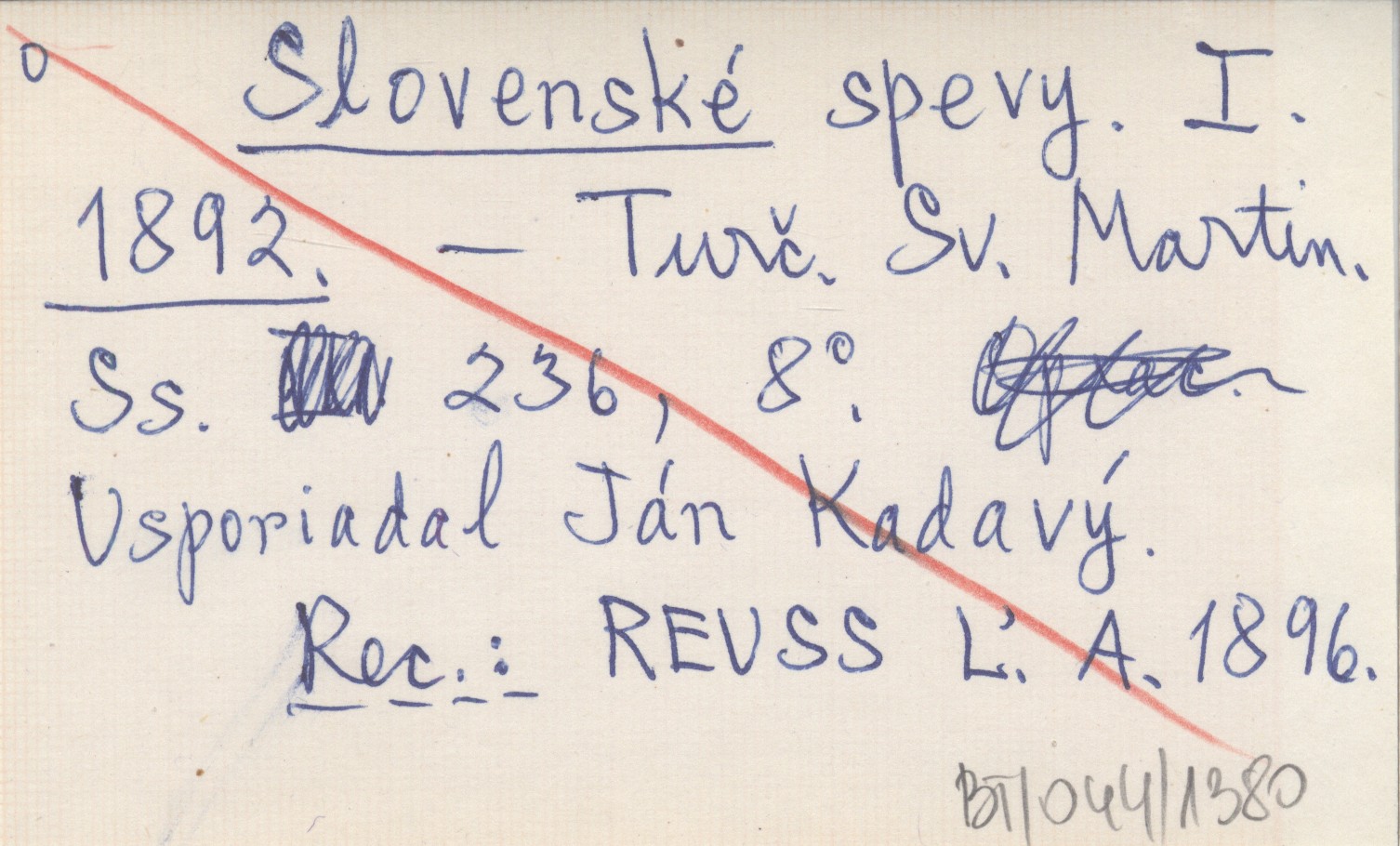 Turčiansky Svätý Martin , 236 s., 8°. Usporiadal Ján Kadavý. REC: REUSS Ľ. A. 1896