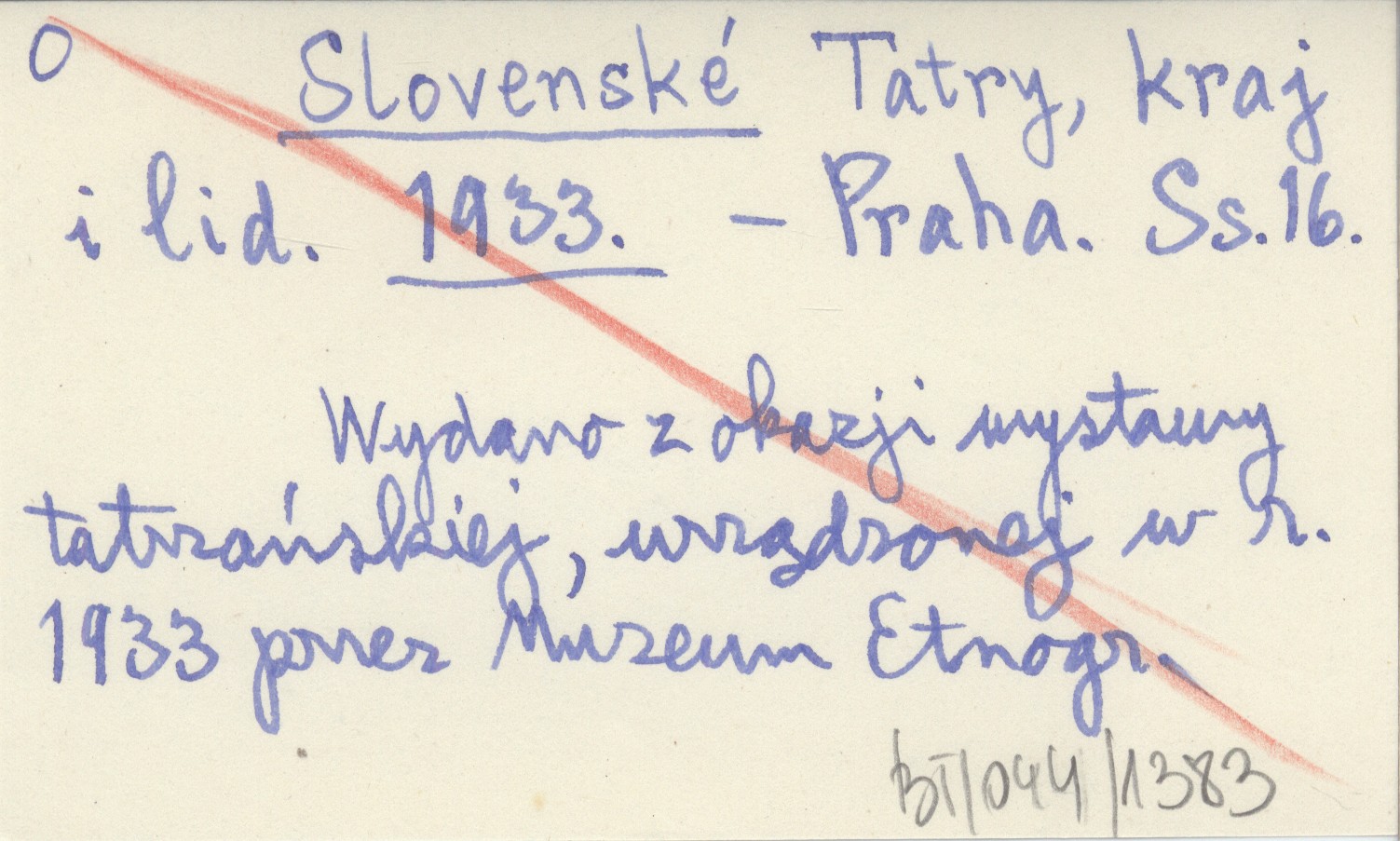 Praha , 16 s. Wydano z okazji wystawy tatrzańskiej, urządzonej w r. 1933 przez Muzeum Etnograficzne.