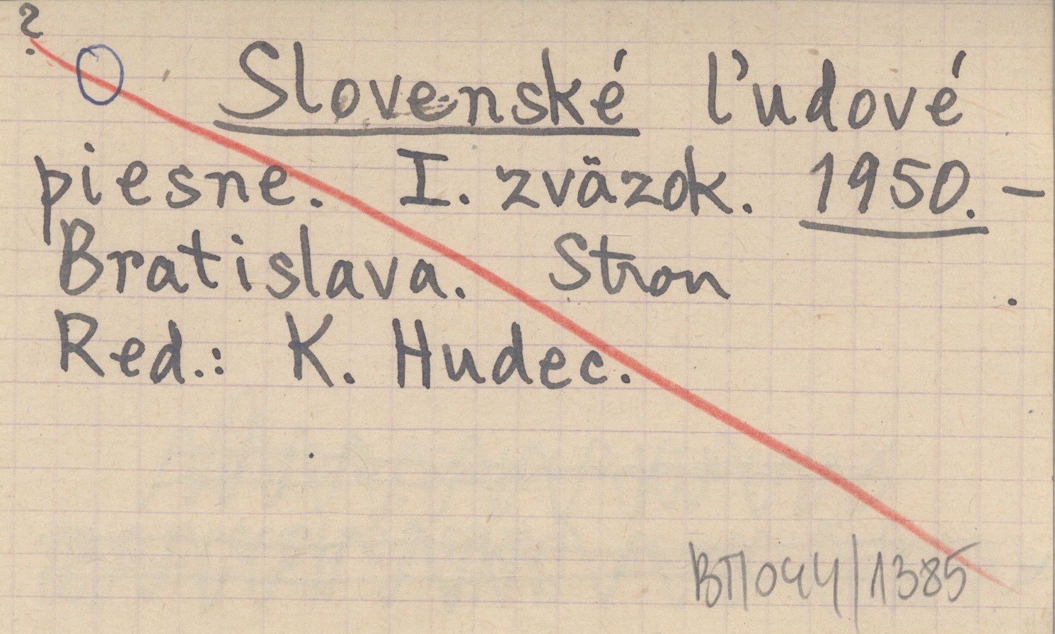 RED: HUDEC, K. ; Slovenské ľudové piesne. I. zväzok. 1950