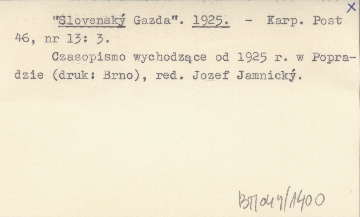 Karpathen-Post, 46, nr 13: 3. Czasopismo wychodzące od 1925 r. w Popradzie (druk: Brno).