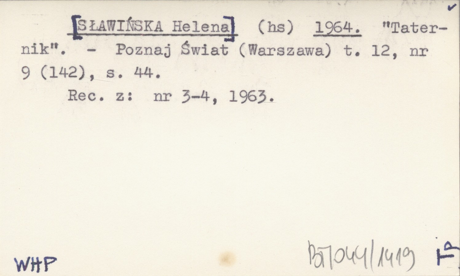Poznaj Świat (Warszawa) , T. 12, nr 9 (142): 44. Recenzja z: 1963, nr 3-4.