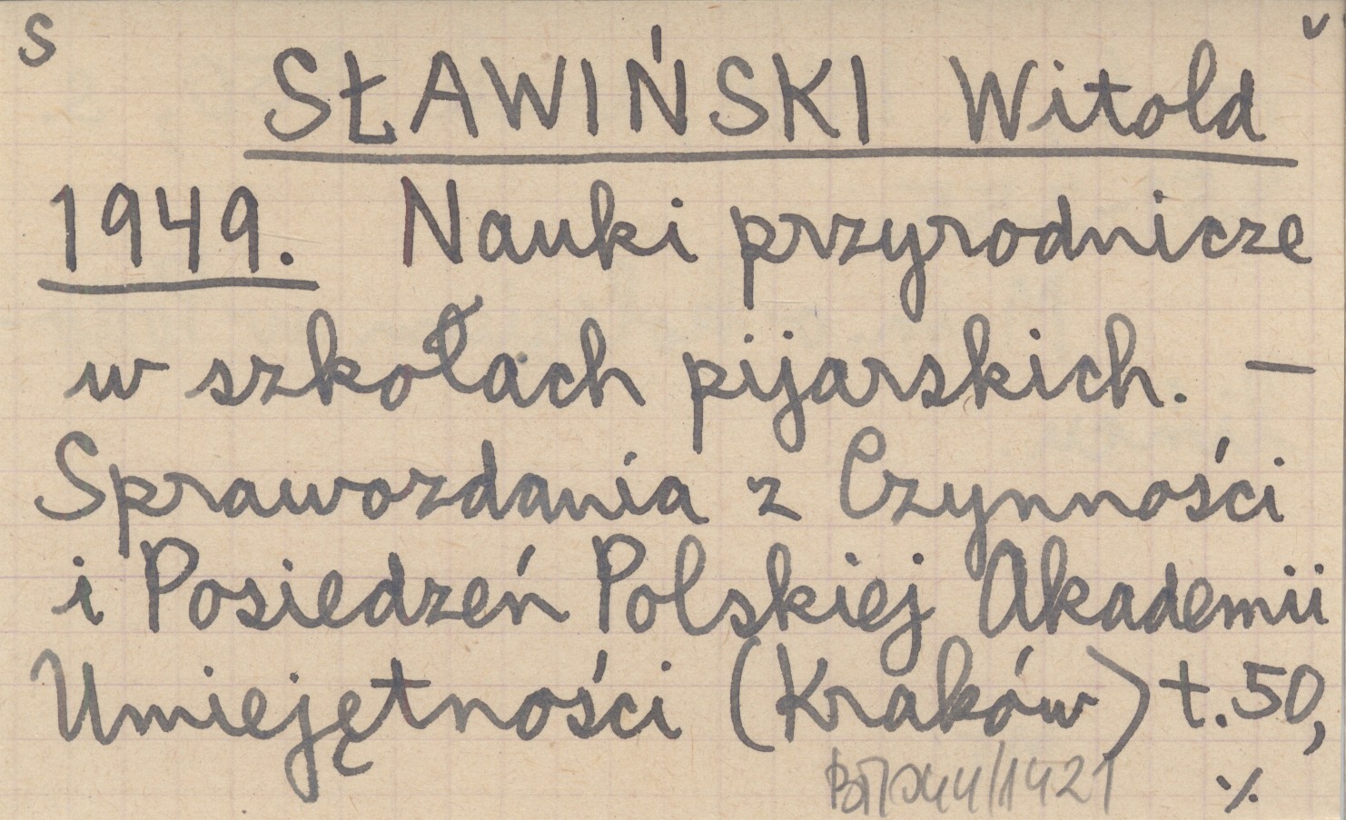 SŁAWIŃSKI Witold 1949 Nauki przyrodnicze w szkołach pijarskich.
