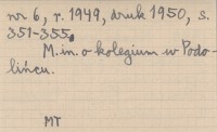 Sprawozdania z Czynności i Posiedzeń Polskiej Akademii Umiejętności (Kraków) , T. 50, nr 6 (1949, druk 1950): 351-355. M. in. o kolegium w Podolińcu.