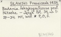 SŁAWSKI Franciszek 1954 Badania leksykograficzne prof. Nitscha.