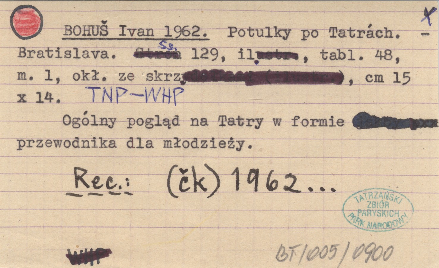 Bratislava , 129 s., il., 48 k. tabl., 1 mapa, okł. ze skrz., 15x14 cm. Ogólny pogląd na Tatry w formie przewodnika dla młodzieży. REC: (čk) 1962...