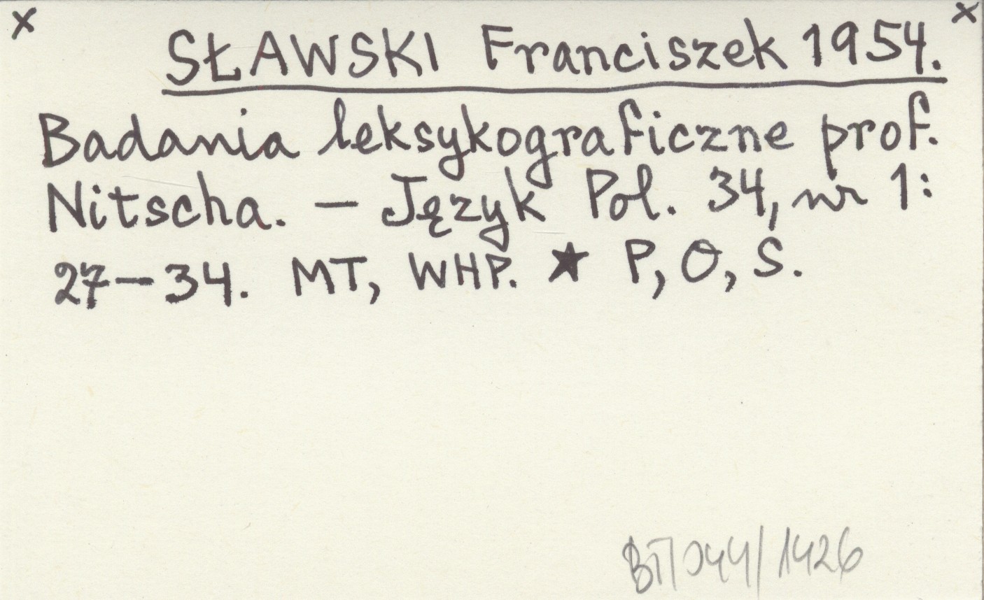 SŁAWSKI Franciszek 1954 Badania leksykograficzne prof. Nitscha.