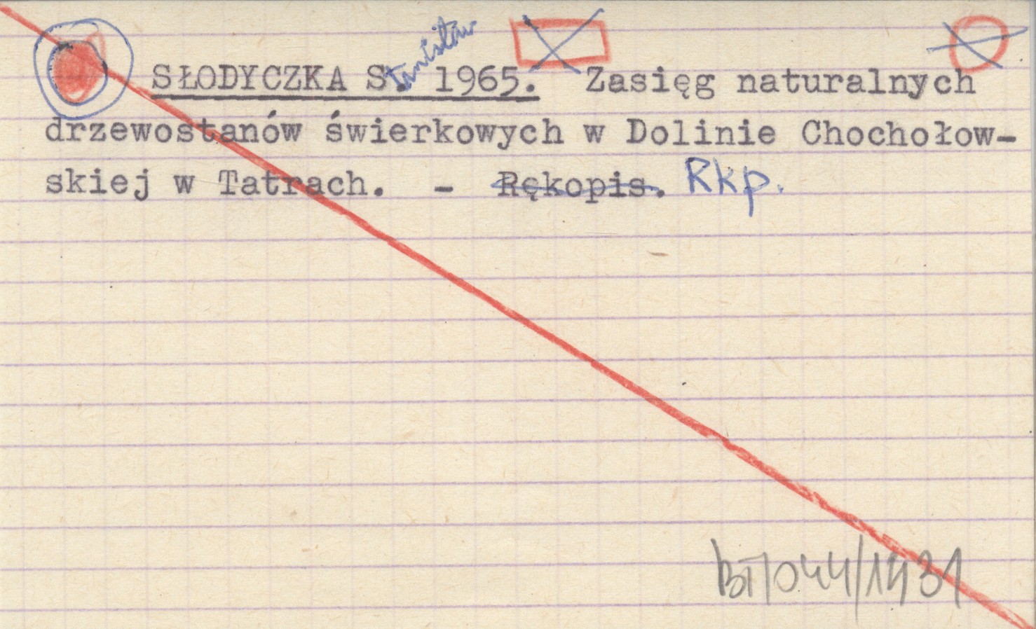 SŁODYCZKA Stanisław 1965 Zasięga naturalnych drzewostanów świerkowych w Dolinie Chochołowskiej w Tatrach.