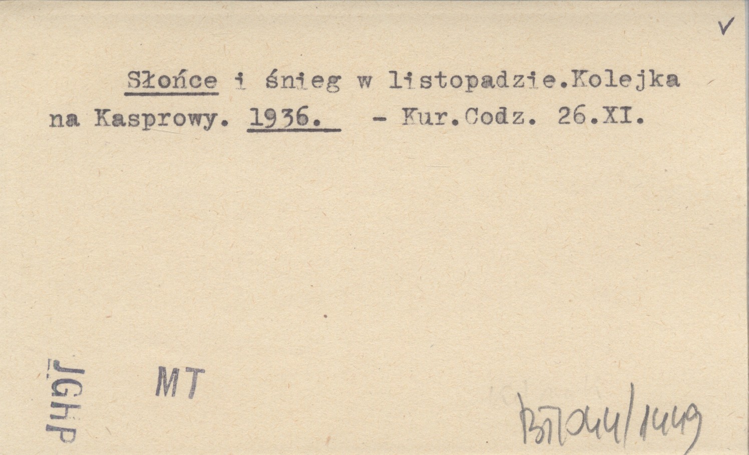 Słońce i śnieg w listopadzie. Kolejka na Kasprowy. 1936