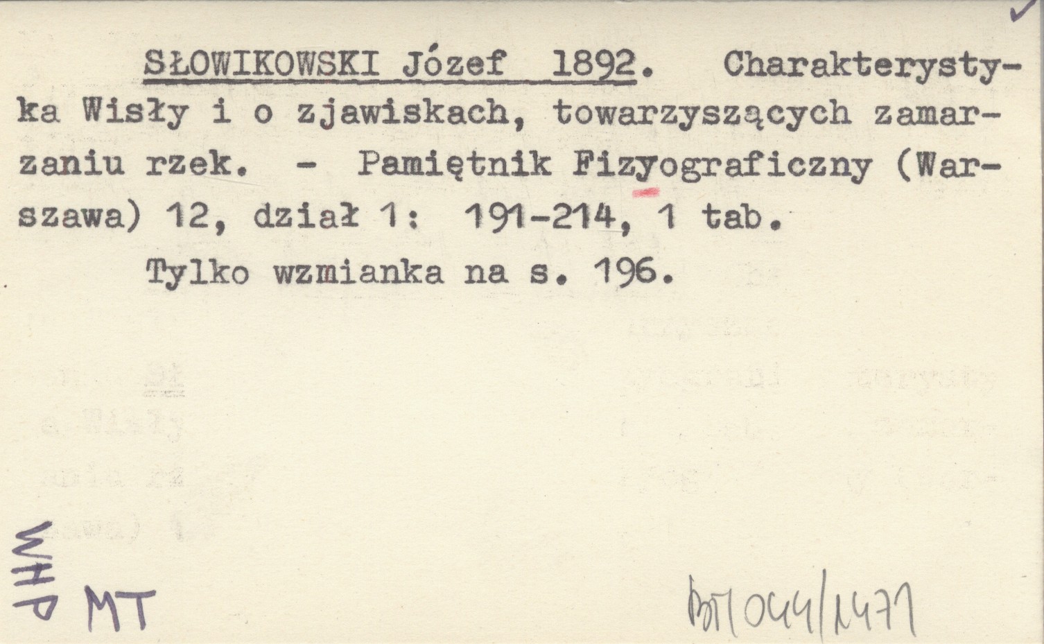 SŁOWIKOWSKI Józef 1892 Charakterystyka Wisły i o zjawiskach, towarzyszących zamarzaniu rzek.