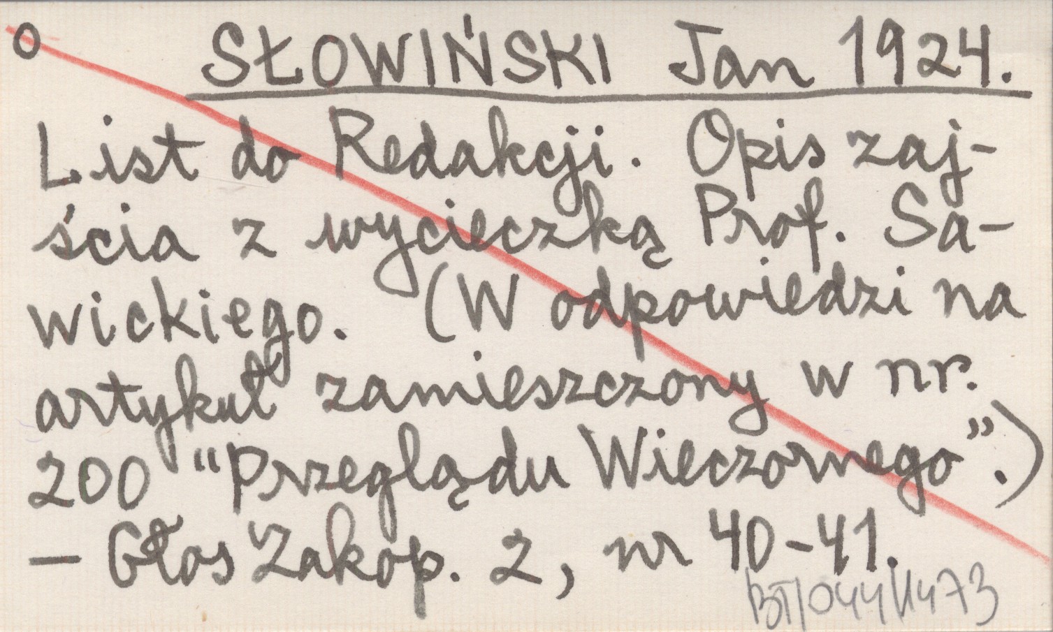 SŁOWIŃSKI Jan 1924 List do Redakcji. Opis zajścia z wycieczką Prof. Sawickiego. (W odpowiedzi na artykuł zamieszczony w nr. 200 "Przeglądu Wieczornego").