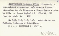 SŁOWIKOWSKI Tadeusz 1939 Fragmenty z przeszłości pierwszego państwowego liceum i gimnazjum im. J. Długosza w Nowym Sączu w wieku XIX.