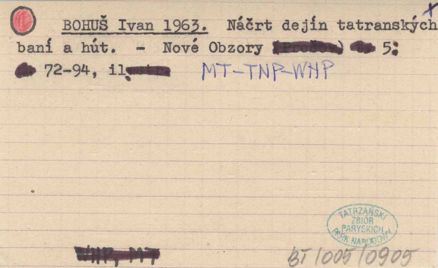 BOHUŠ Ivan 1963 Náčrt dejín tatranských baní a hút.