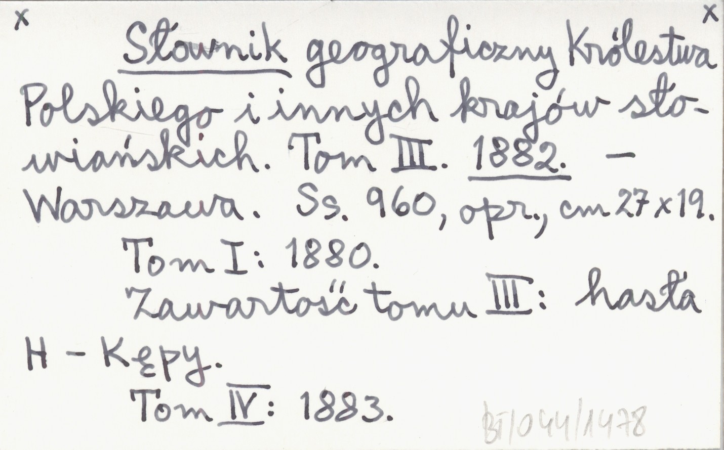 Warszawa , T. III, 960 s., opr., 27x19 cm. Tom I: 1880. Zawartość tomu III: hasła H-Kępy. Tom IV: 1883.