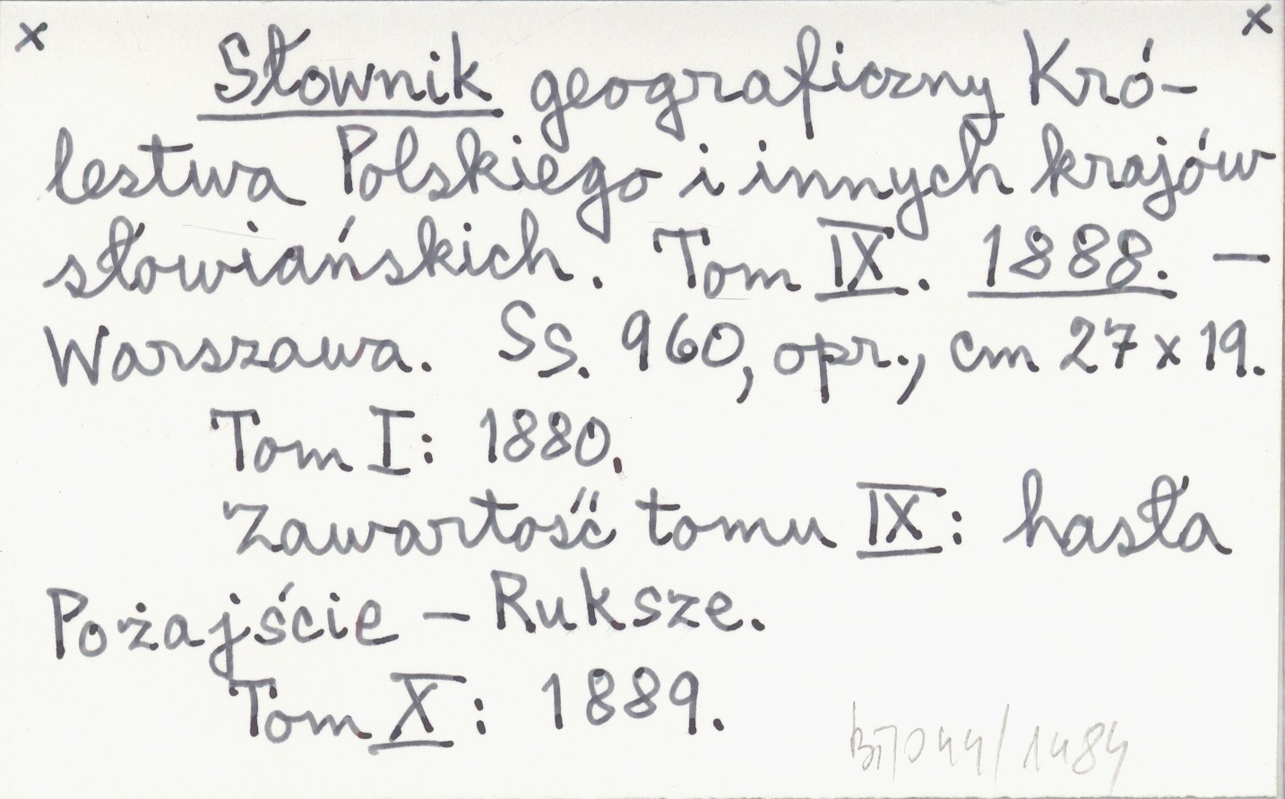 Warszawa , T. IX, 960 s., opr., 27x19 cm. Tom I: 1880. Zawartość tomu IX: hasła Pożajście-Ruksze. Tom X: 1889.