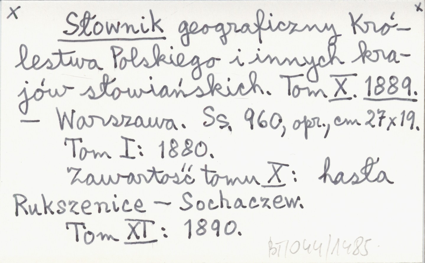 Warszawa , T. X, 960 s., opr., 27x19 cm. Tom I: 1880. Zawartość tomu X: hasła Rukszenice-Sochaczew. Tom XI: 1890.