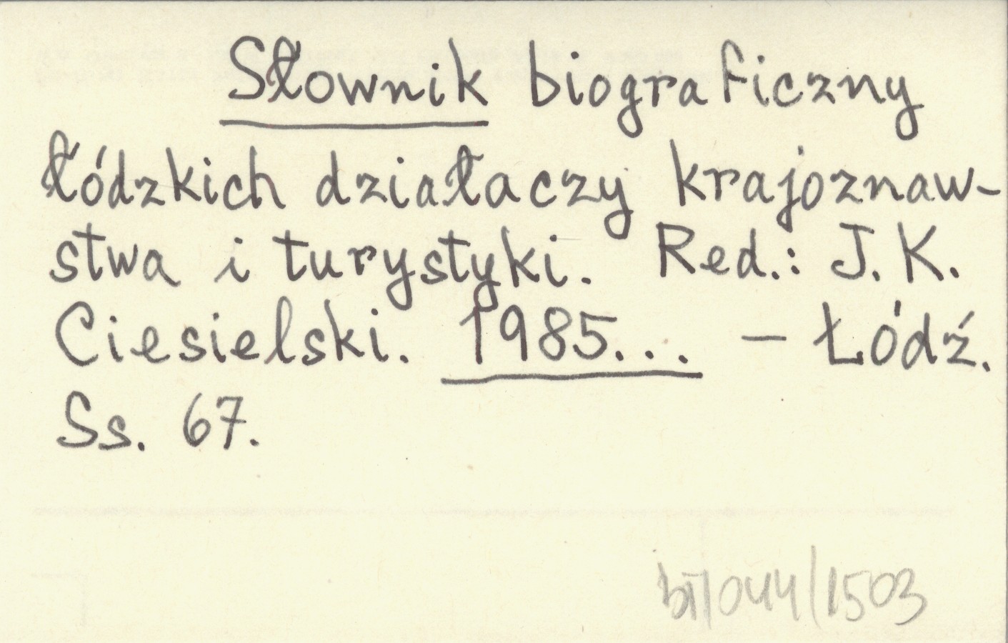 RED: CIESIELSKI, J. K. ; Słownik biograficzny łódzkich działaczy krajoznawstwa i turystyki. 1985...