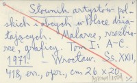 Słownik artystów polskich i obcych w Polsce działających. Malarze, rzeźbiarze, graficy. Tom I: A-C. 1971
