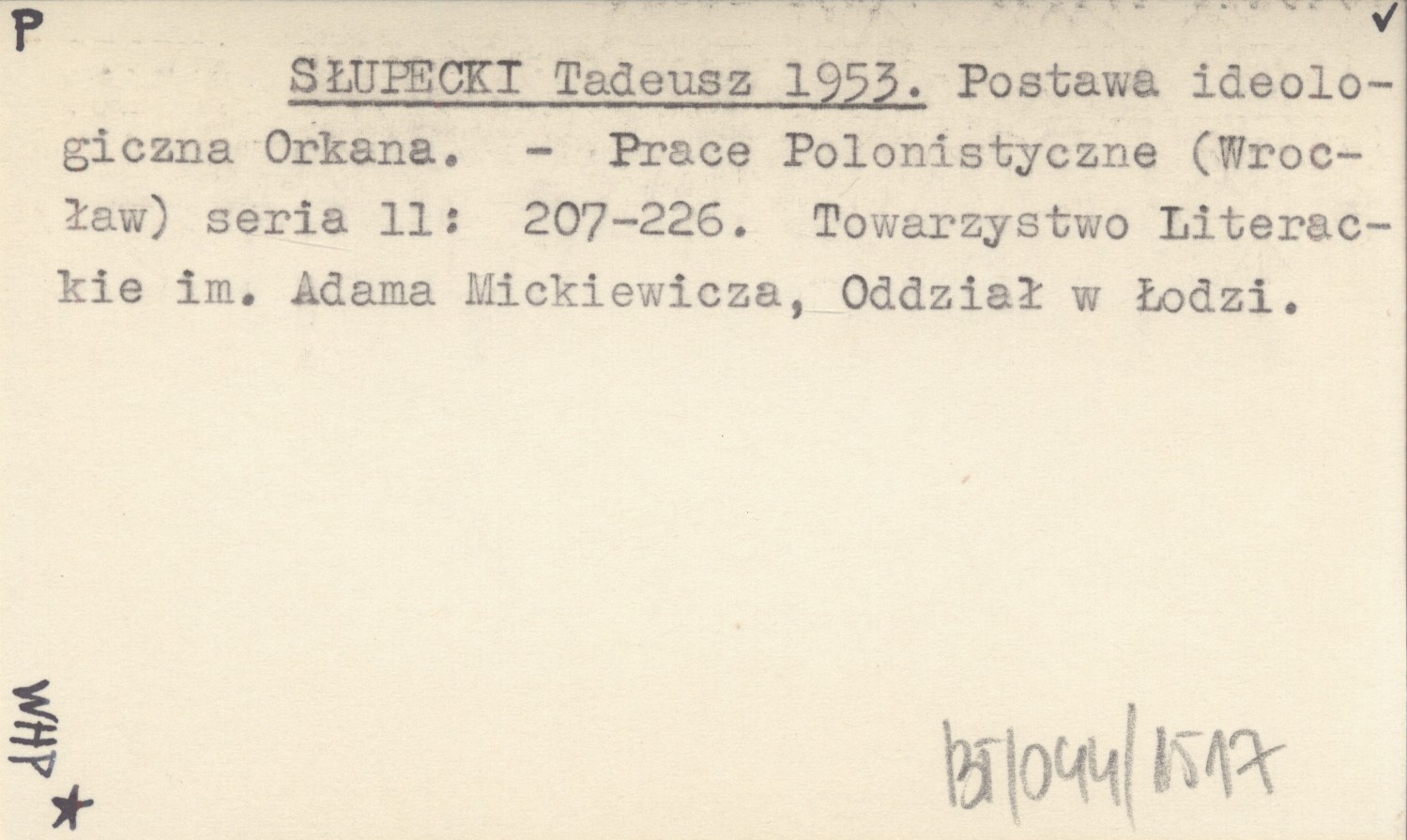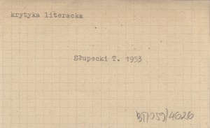 SŁUPECKI Tadeusz 1953 Postawa ideologiczna Orkana.
